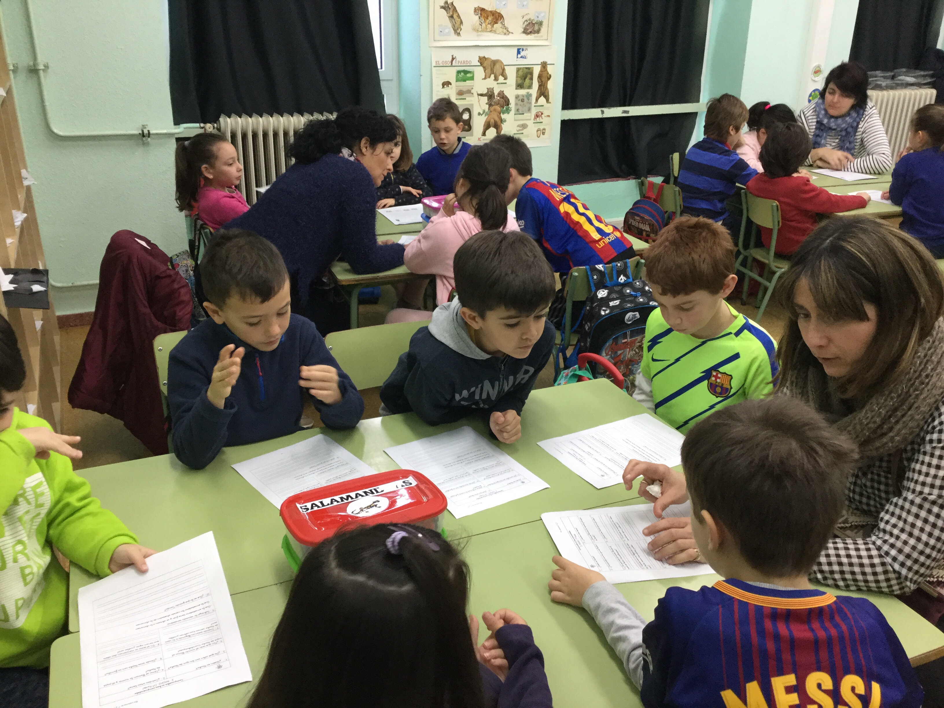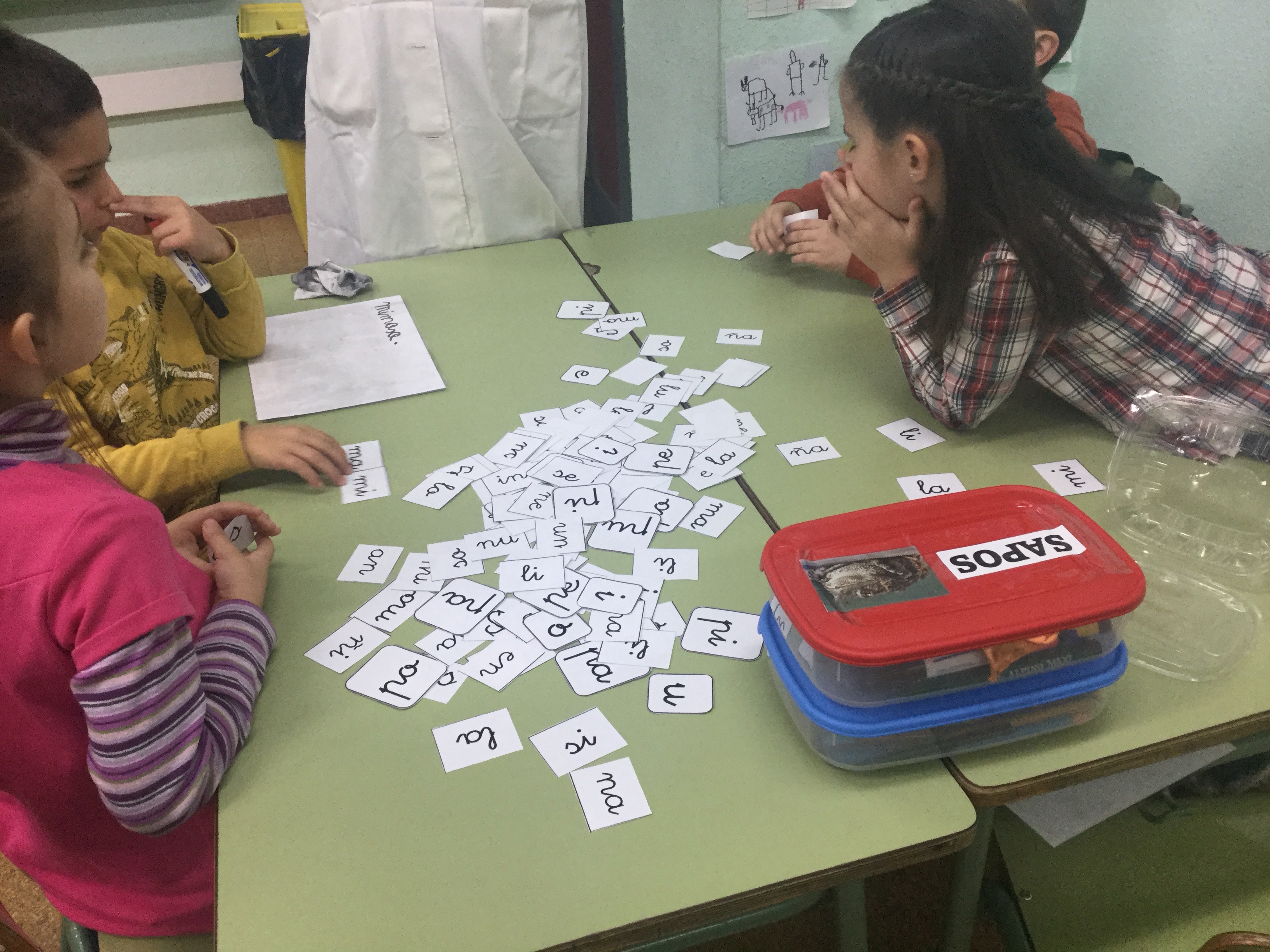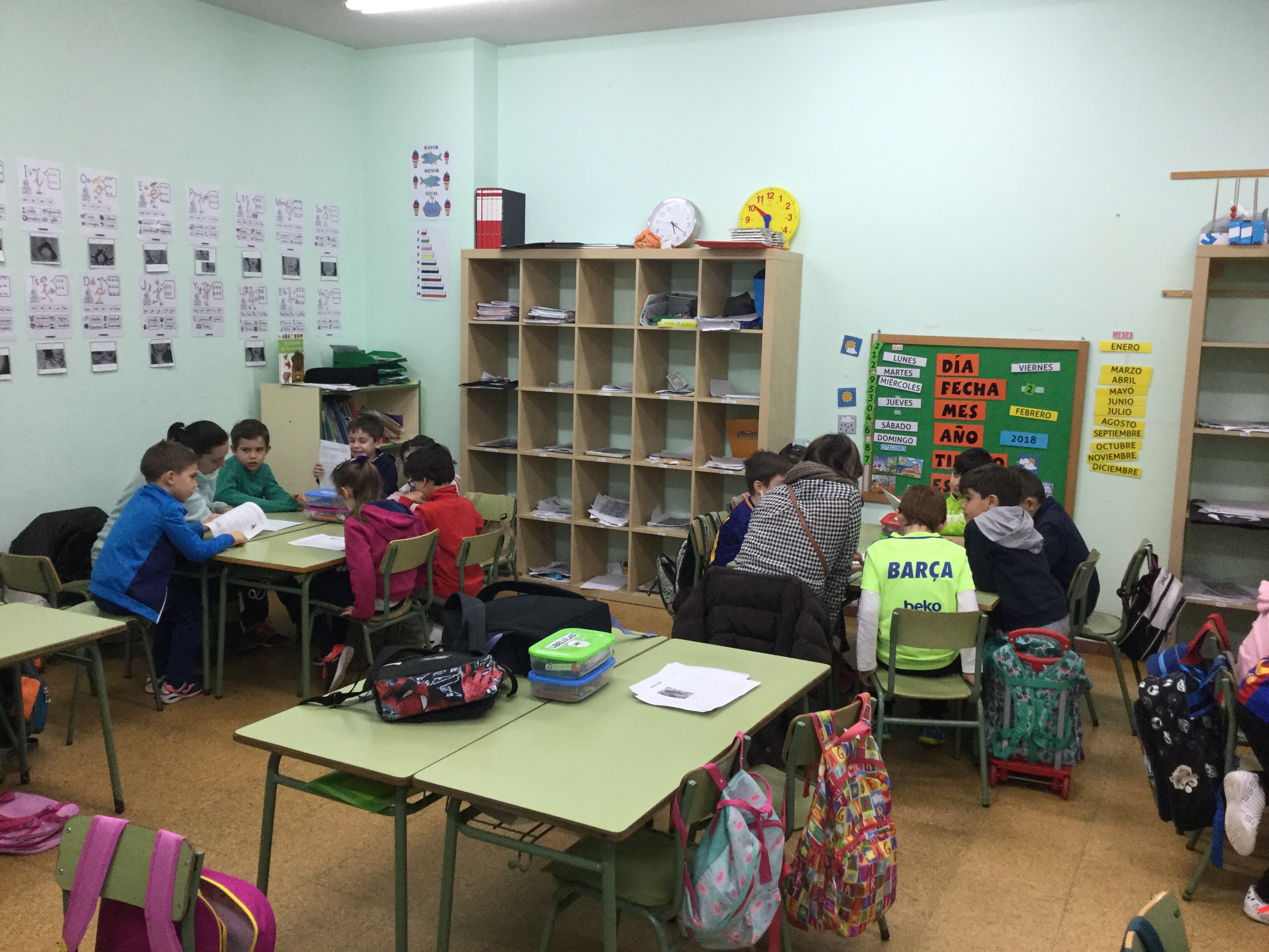 A lo largo de este curso ya son varias las ocasiones en las que diferentes mamás y papás han tenido la generosidad de dedicarnos un buen rato de su tiempo para venir al cole y ayudarnos en la infinita labor de aprender. En esta ocasión nos han ayudado con un poco de lectura comprensiva, pero antes de de leer en grupo, una guardiana de historias nos contó un bonito cuento que terminaba con una sorpresa para la clase: unas pinzas de letras para construir una pared de palabras desconocidas. La primera que escribimos fue husmear y seguro que pronto irán apareciendo más.