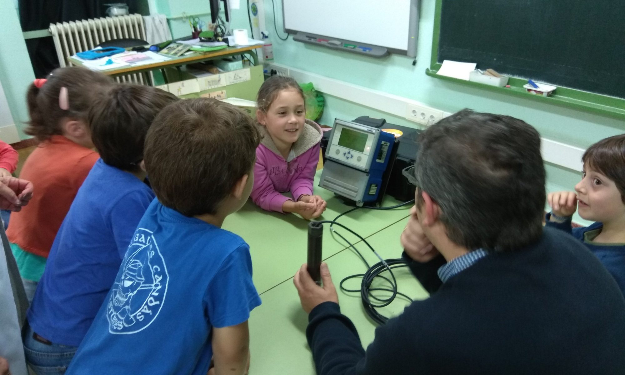 También medimos la temperatura con un termómetro especial. Vimos cómo funcionaban unos fluorescentes similares a los que tenemos en el cole e incluso averiguamos el PH del agua con un aparato que nos confirmó que el agua que usamos para regar nuestras plantas, así como el agua de los peces de la clase tienen el PH adecuado.