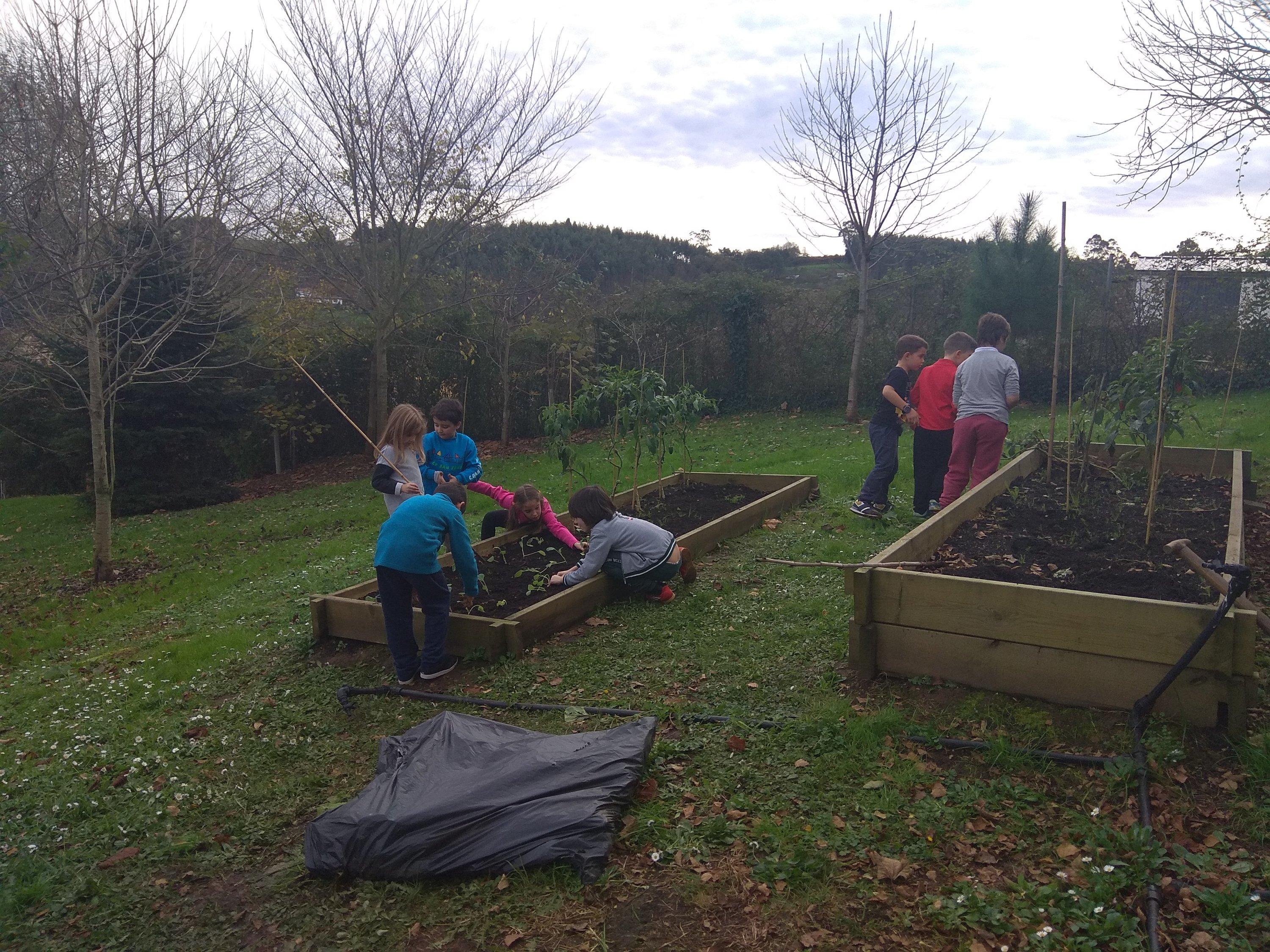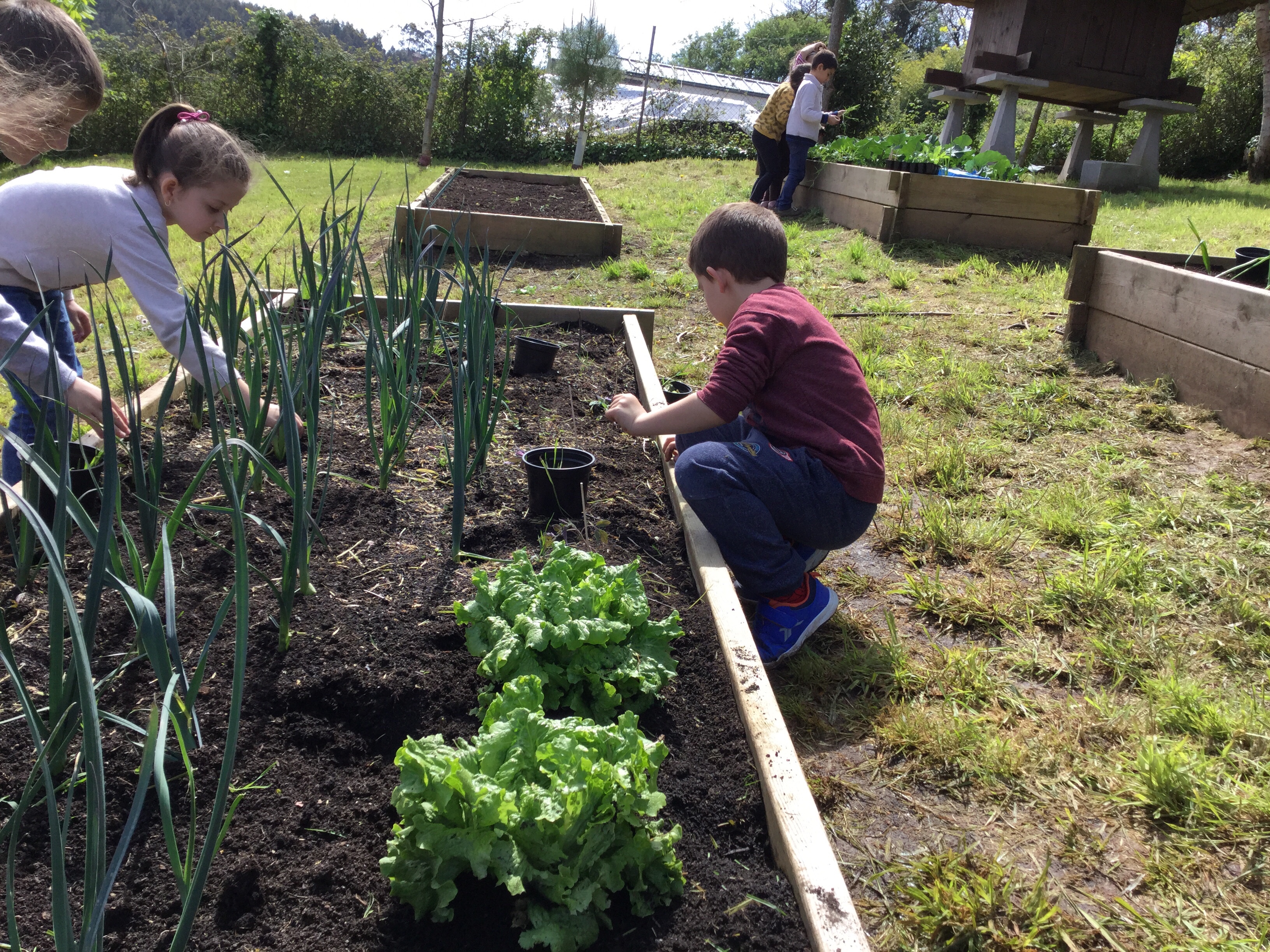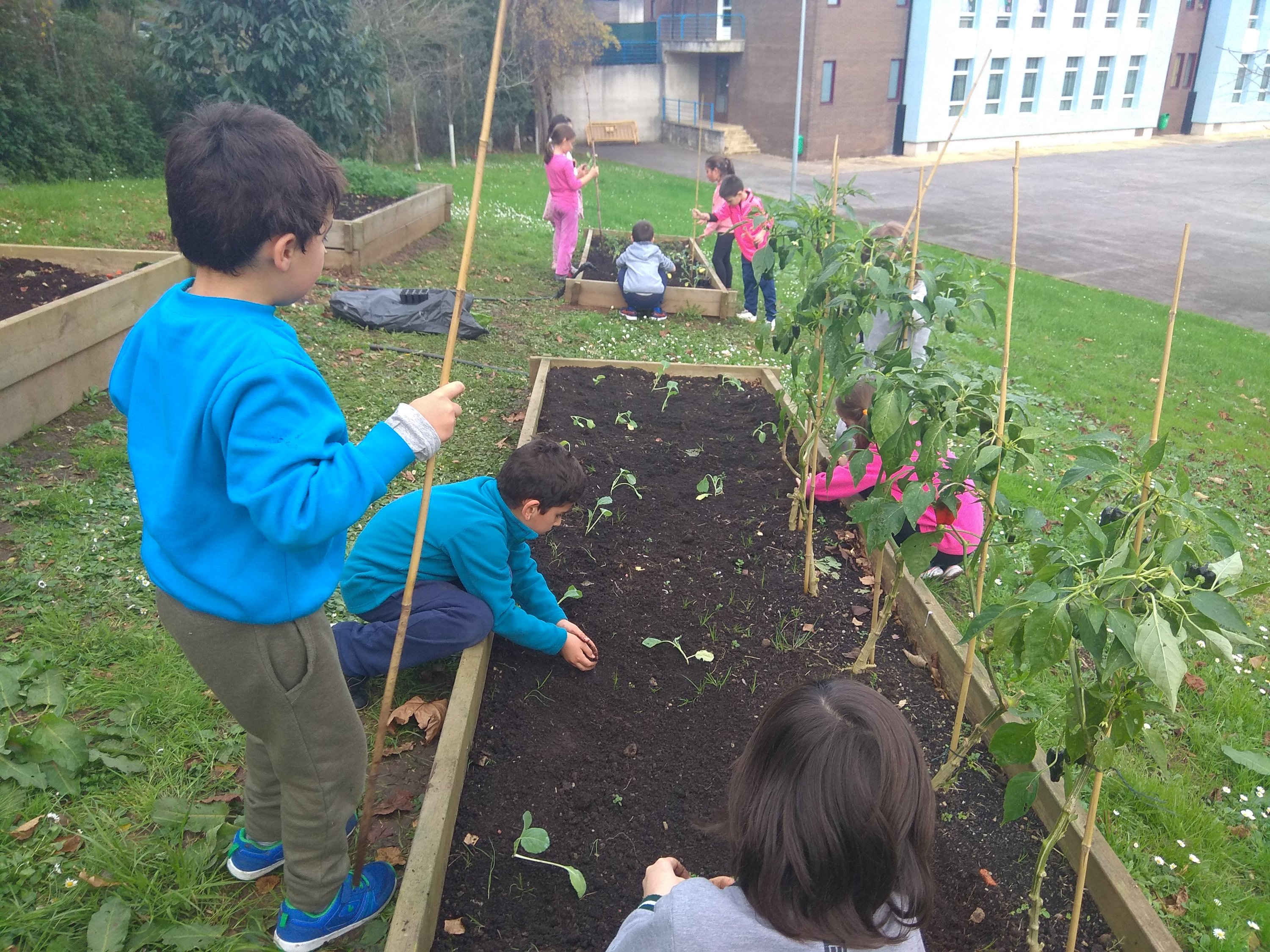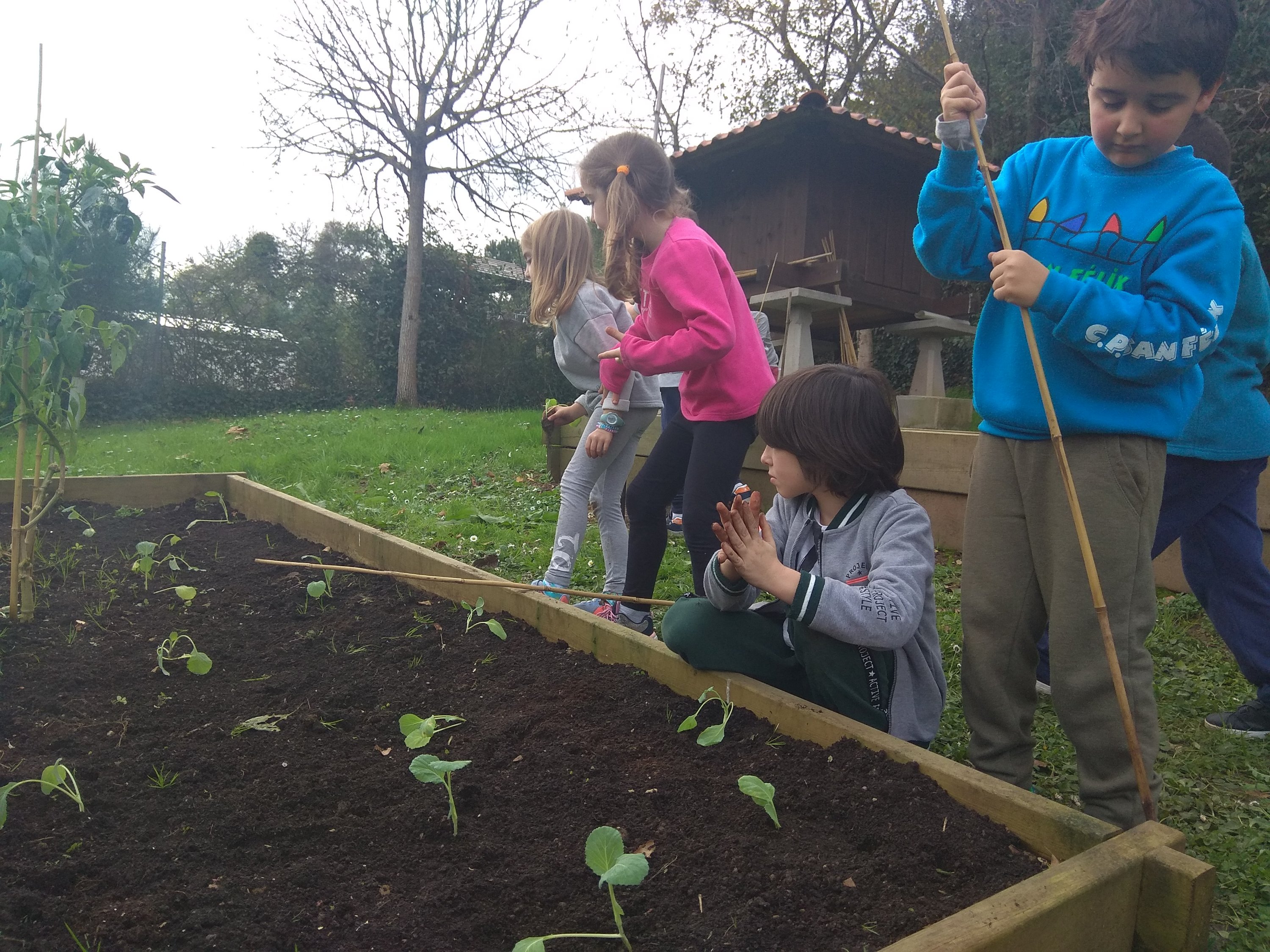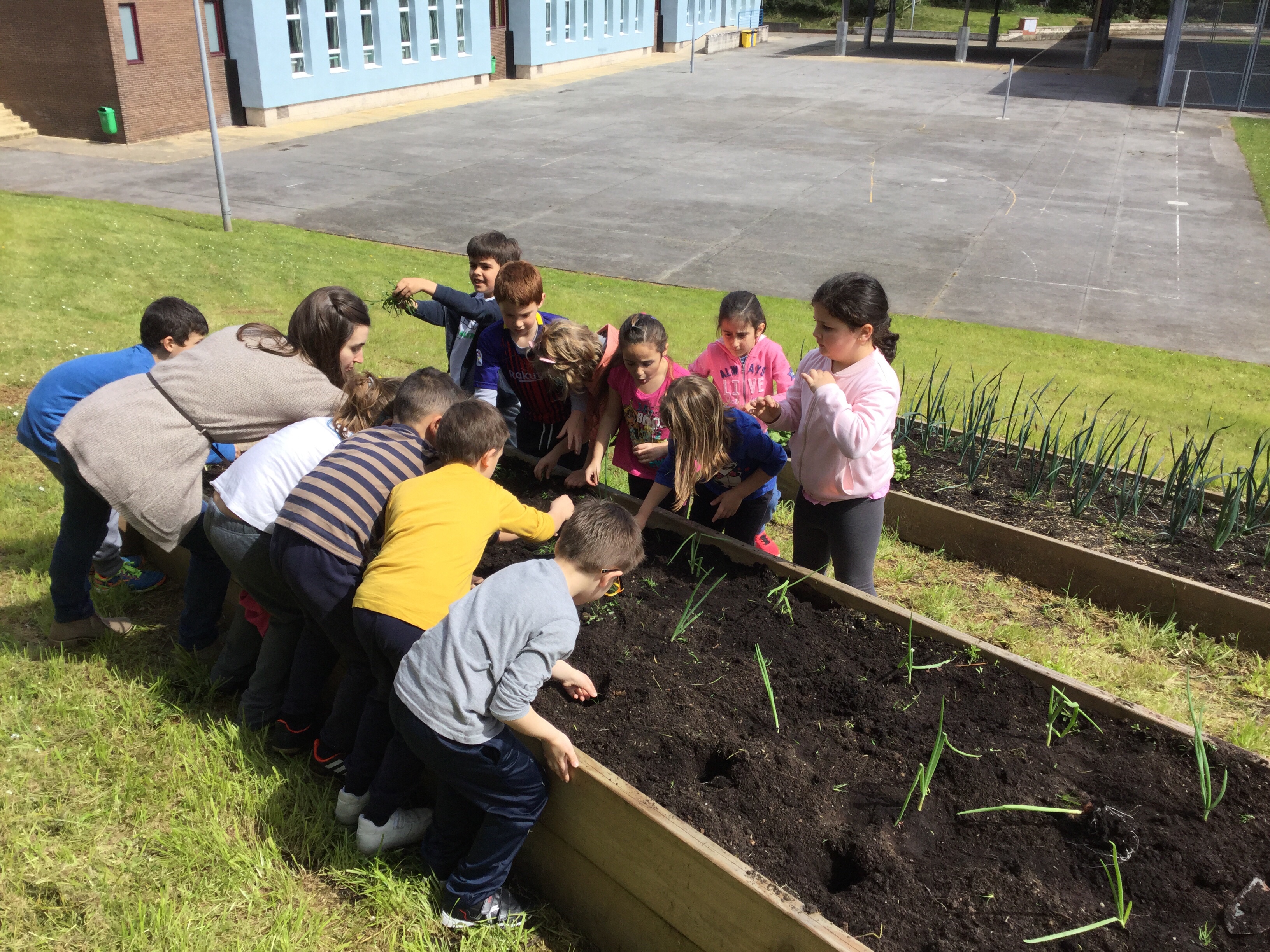 Al final del día del pasado viernes, parte de la clase se pudo desplazar al huerto con Gerardo, maestro jubilado, director emérito del cole, entrenador de fútbol y amante de la horticultura, entre otras muchas cosas.