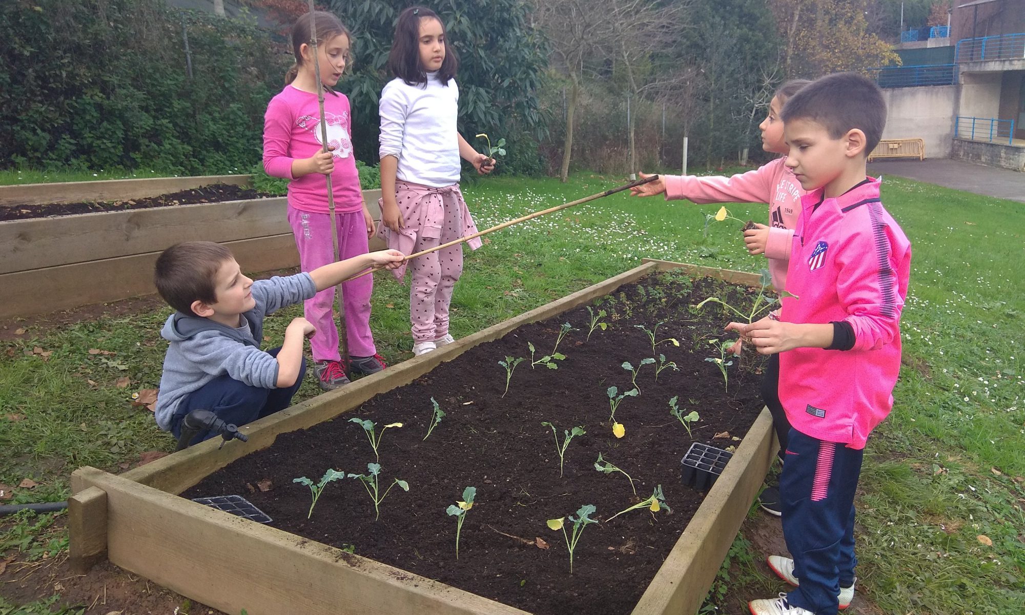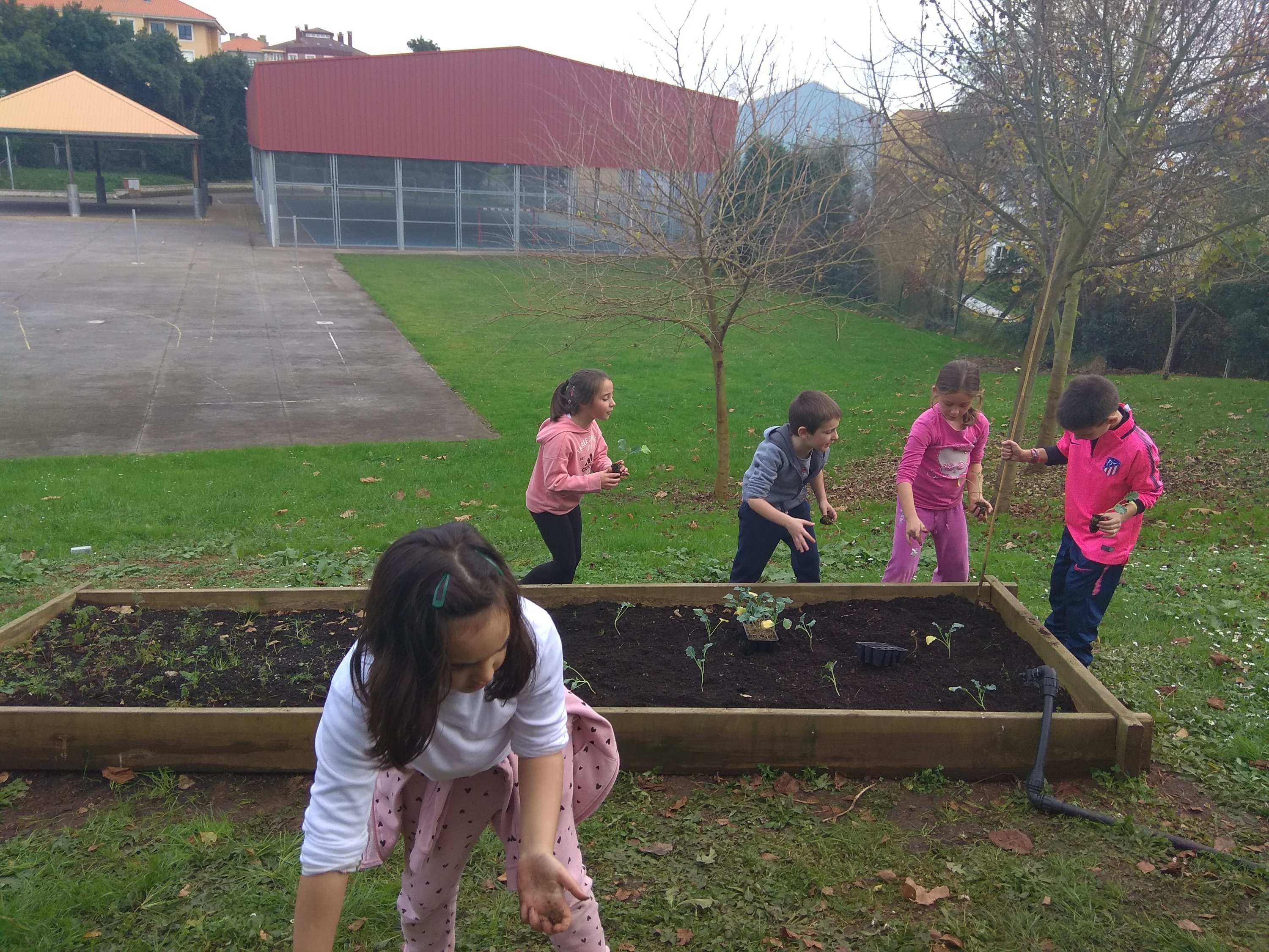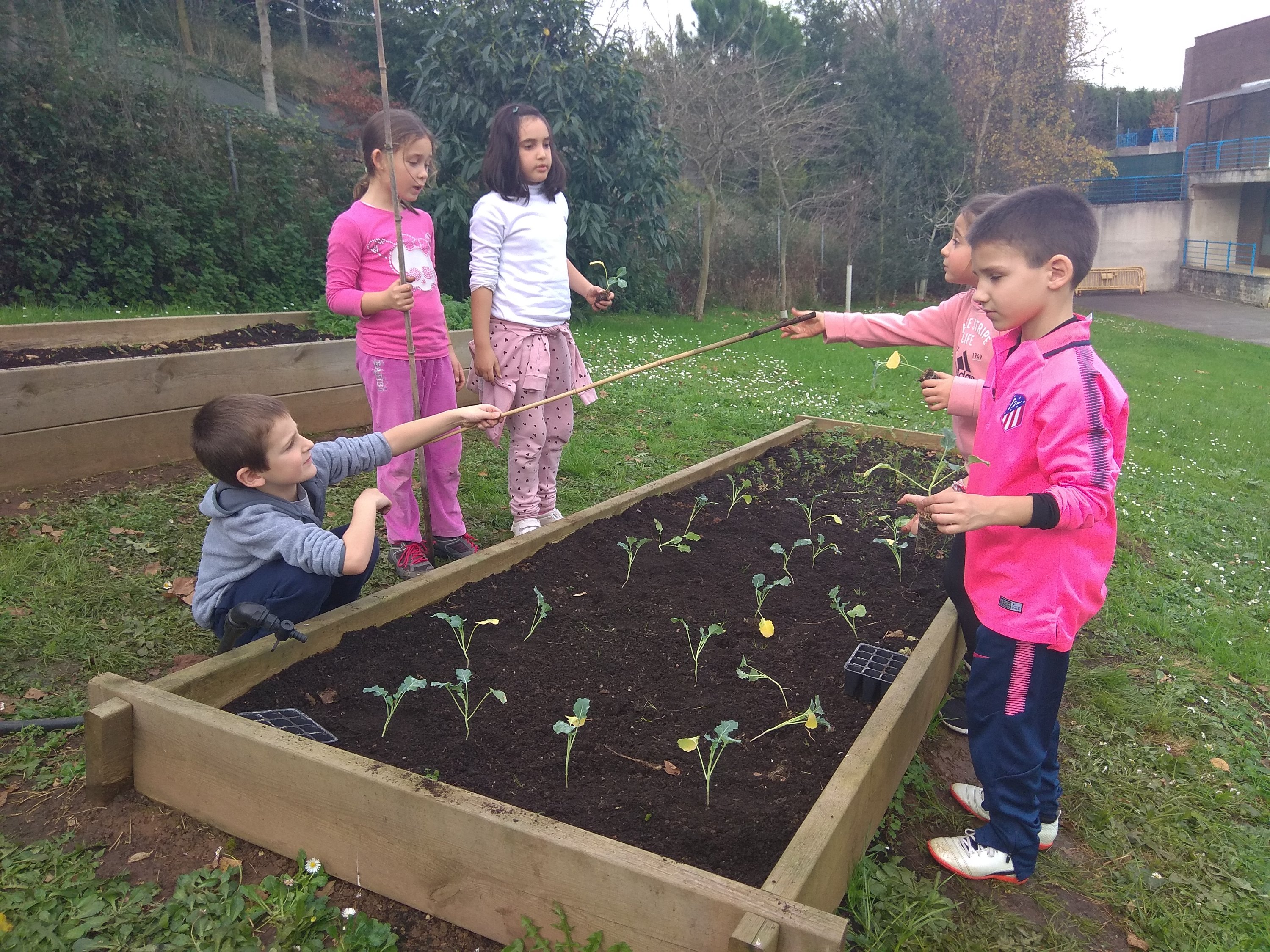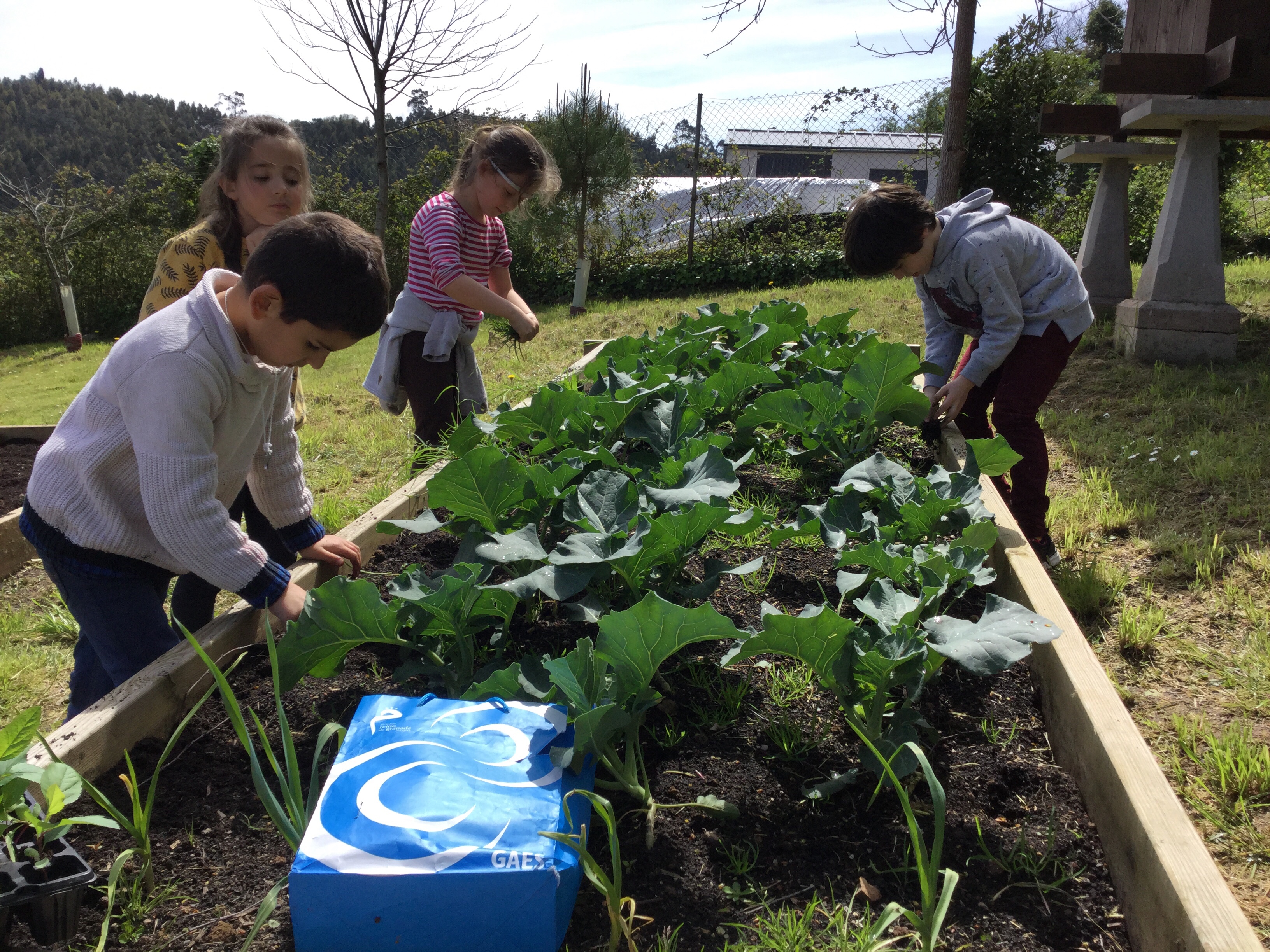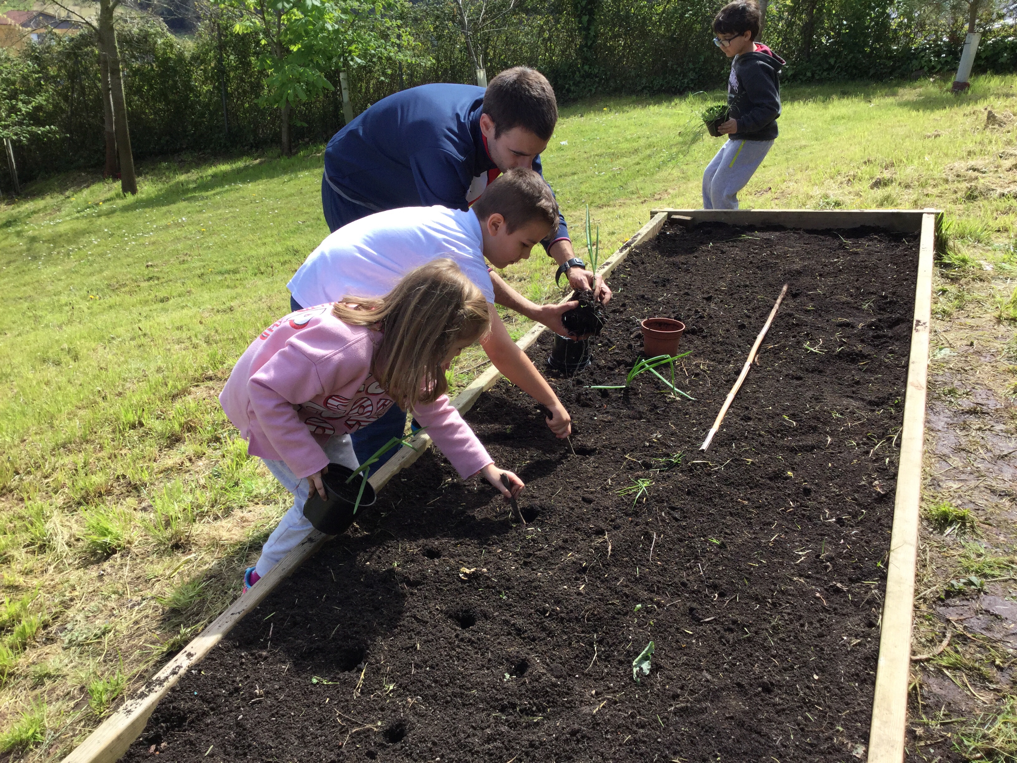Al final del día del pasado viernes, parte de la clase se pudo desplazar al huerto con Gerardo, maestro jubilado, director emérito del cole, entrenador de fútbol y amante de la horticultura, entre otras muchas cosas.
