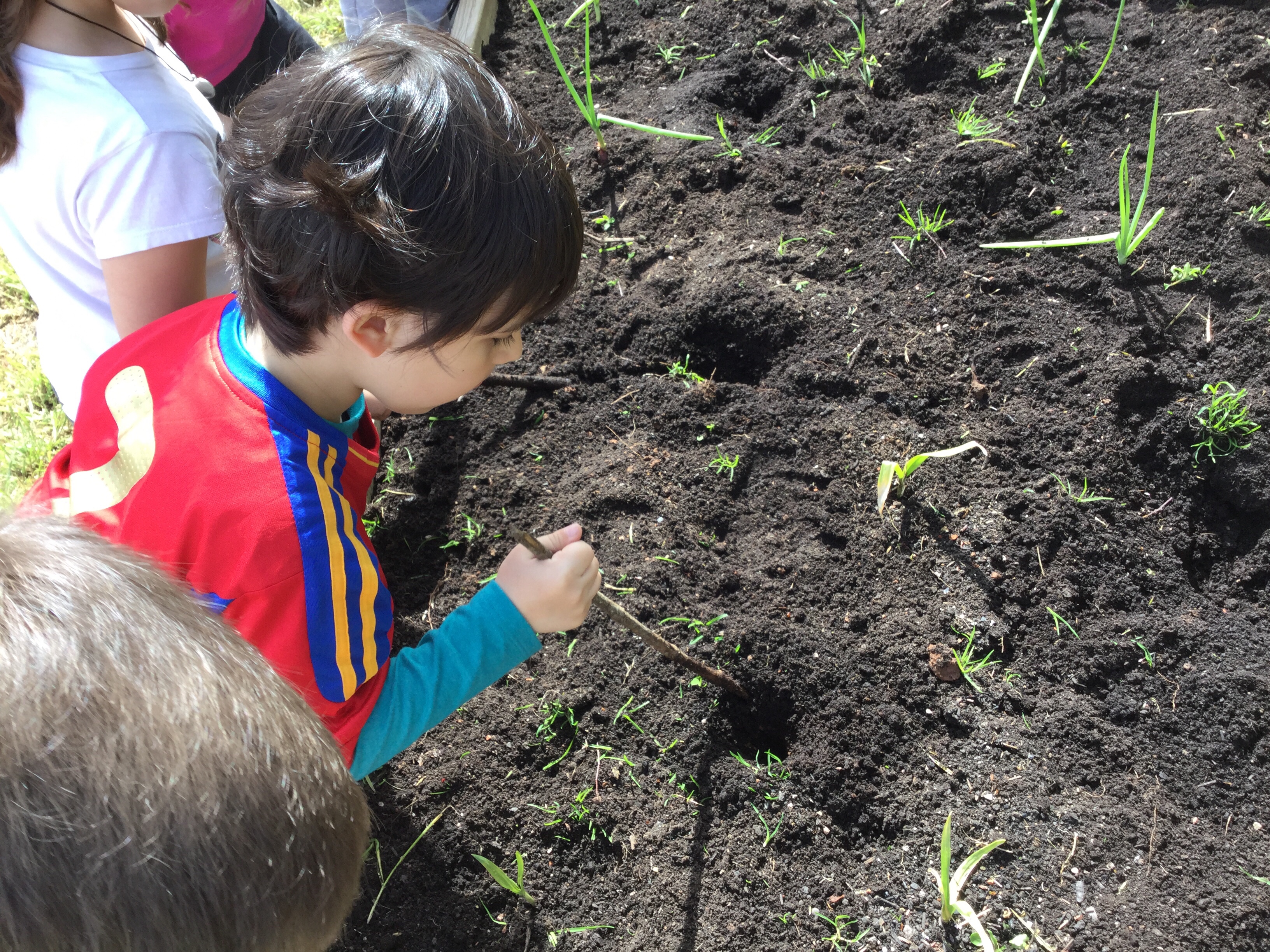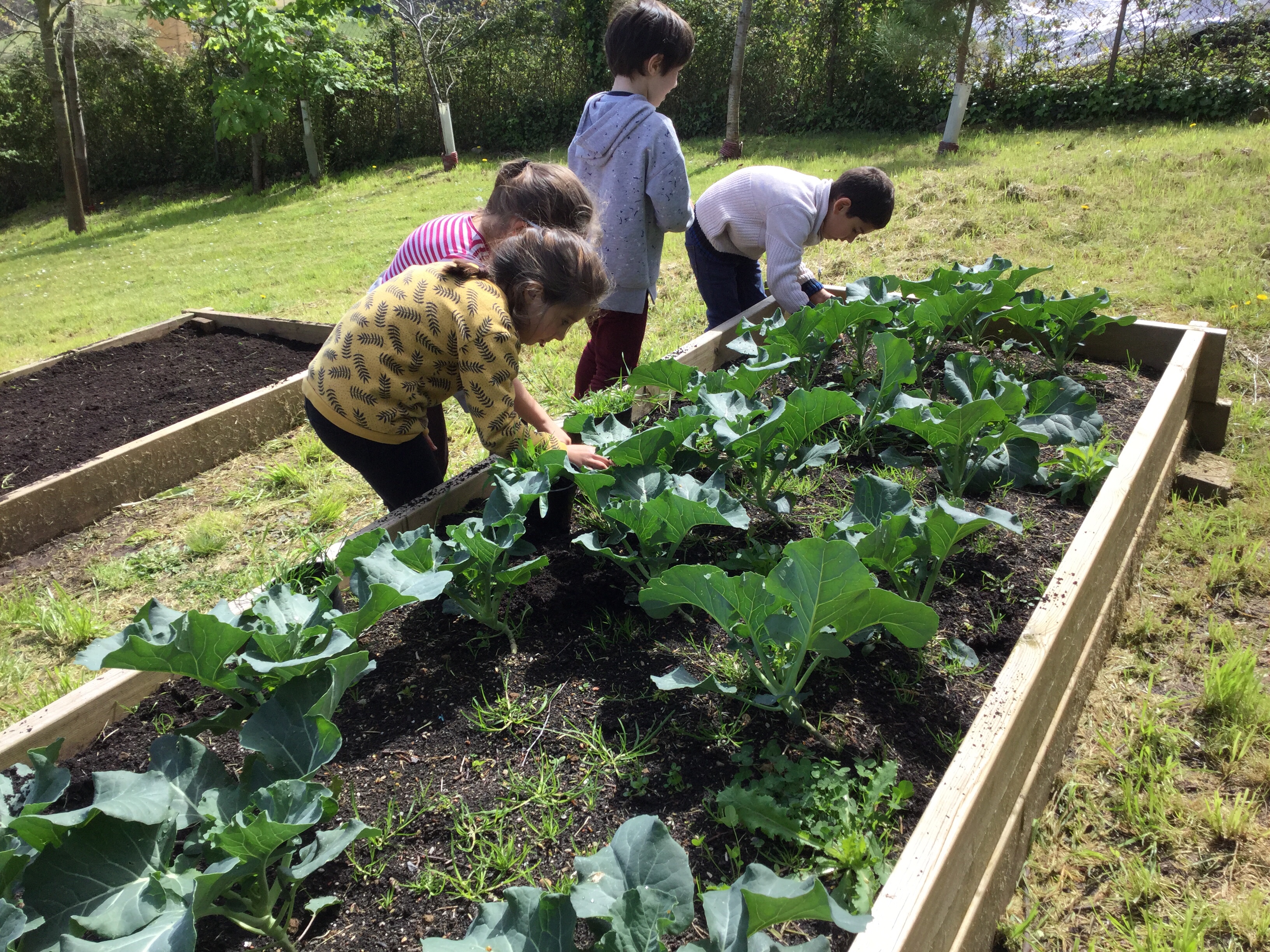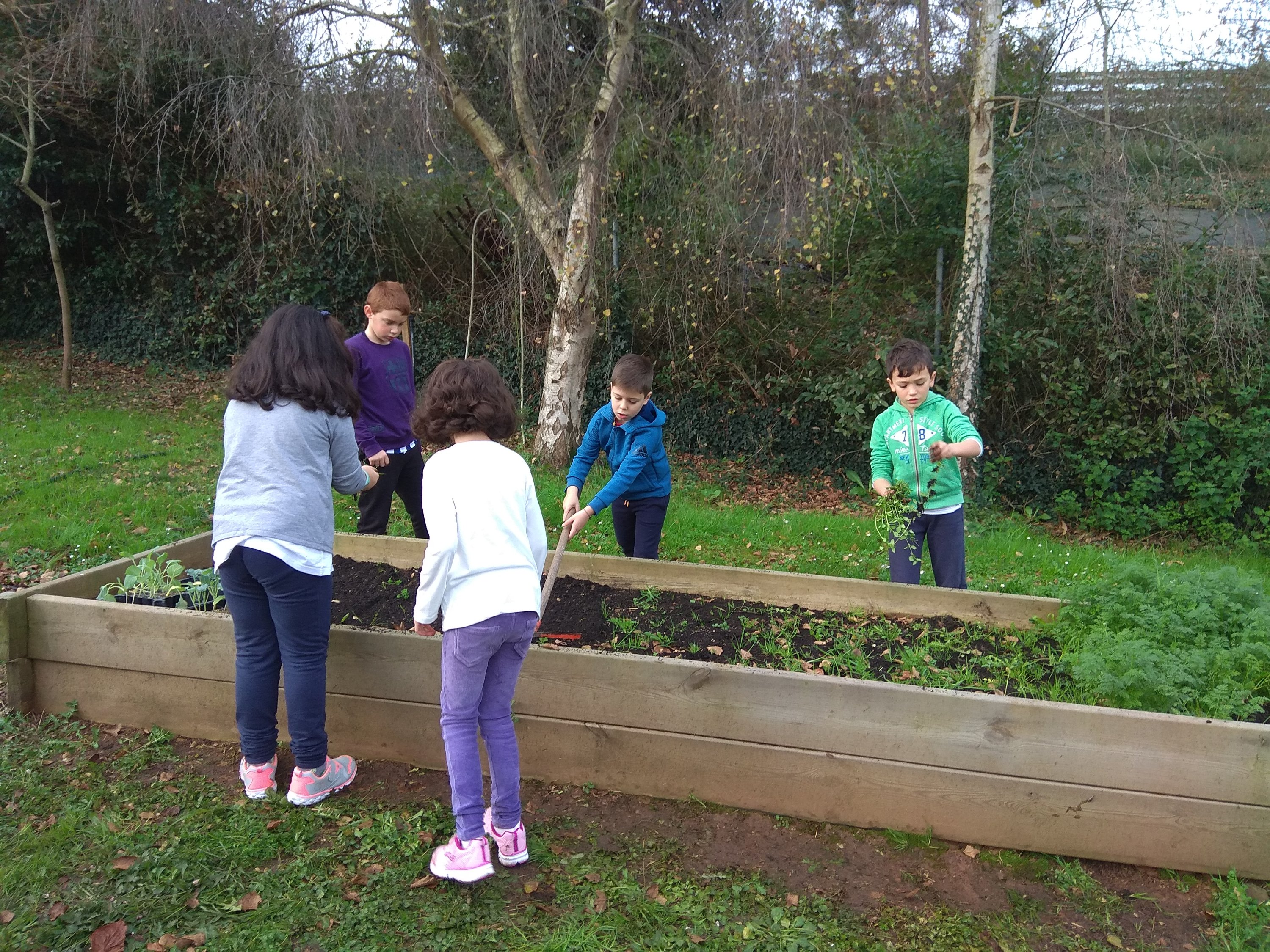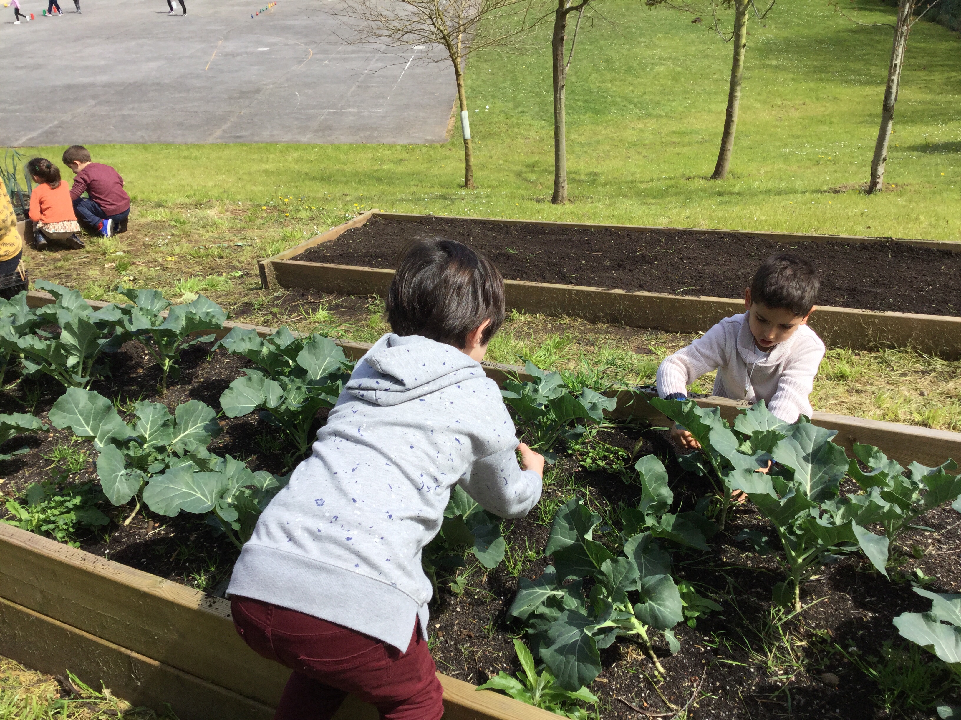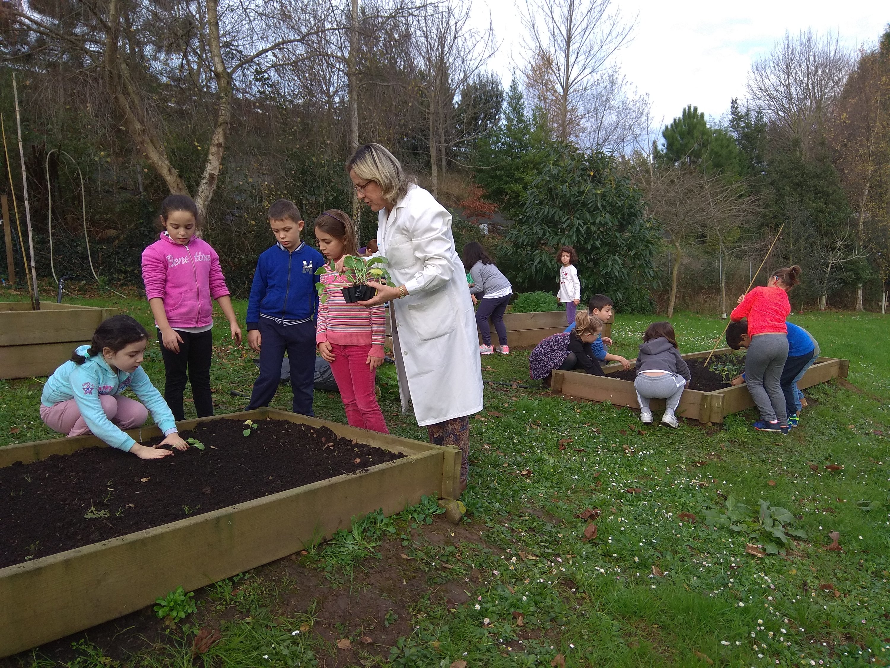 Al final del día del pasado viernes, parte de la clase se pudo desplazar al huerto con Gerardo, maestro jubilado, director emérito del cole, entrenador de fútbol y amante de la horticultura, entre otras muchas cosas.
