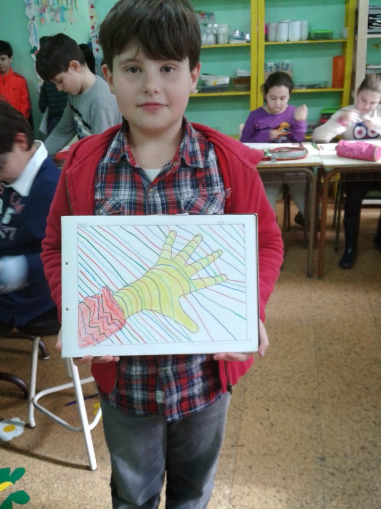 3-D HANDS 24 February, 2014 CREATING 0 0 AS WE LEARNED ABOUT LINES, WE THOUGHT THAT IT WOULD BE NICE TO USE LINES TO CREATE PERSPECTIVE AND PLAYING A LITTLE WITH DIMENSIONS. WE TRACED OUR HANDS AND BY USING PARALELL LINES WE´VE CREATED THE IDEA OF A POP-OUT HAND. Post Views: 1,370