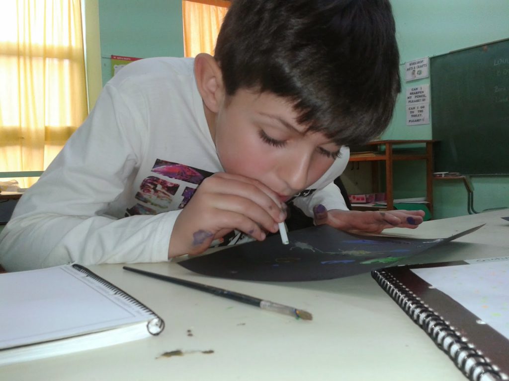 water with the paint so it was easy to extend on the paper. Then, using a straw