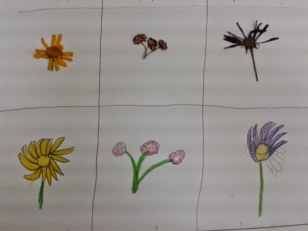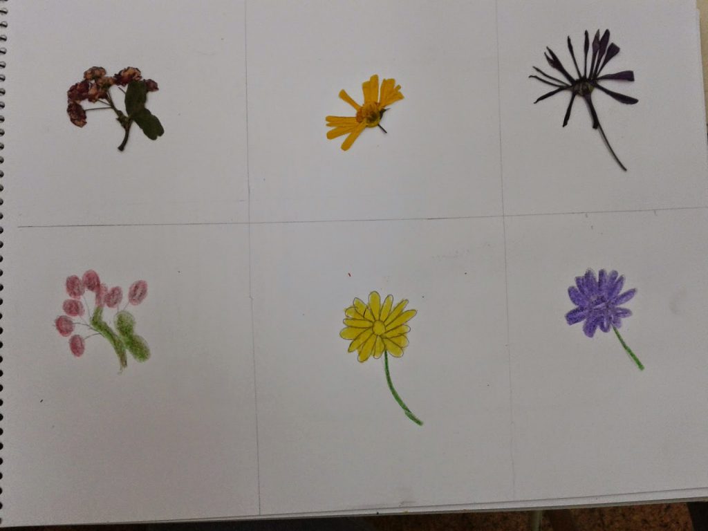 We selected three flowers (or leaves) in order to compress them in our sketchbooks for a couple of weeks. After that time we found out that the flowers were dry, but still looking great. It was time to imitate those details that every artist should dominate. Here you´ve got a couple of examples: