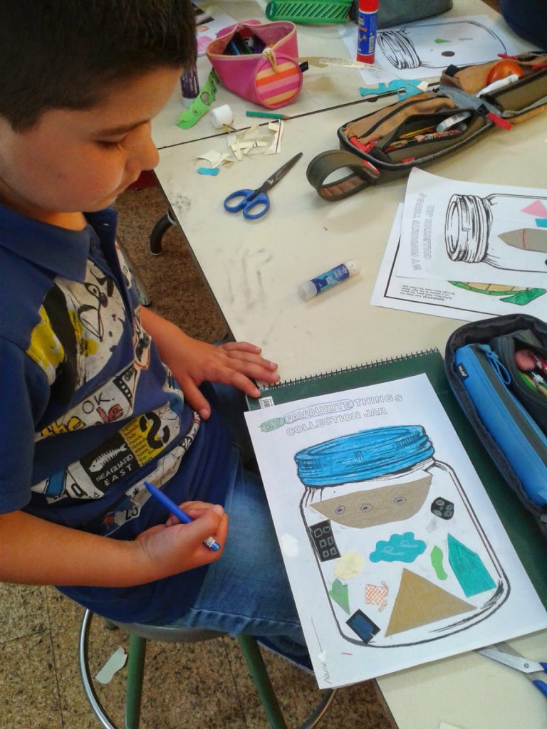 MY FAVOURITE THINGS JAR 23 June, 2014 CREATING 0 0 The third graders put their favourite things inside of a jar. How did we make it? We cut out the shape of the object, we added the details that we wanted and we pasted it to the bottom of the jar. Post Views: 1,494
