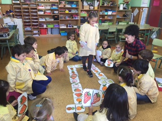 Nosotros, para finalizar la actividad, hemos jugado con un dominó gigante de frutas, así de paso, repasamos las sílabas trabadas, la /z/y la /s/. Estaría genial que vosotros también jugaseis alguna partida con el dominó que vosotros tengáis por casa. ¡¡¡Espero que disfrutéis mucho juntos!!!!