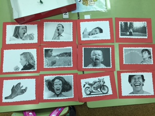 Hoy hemos jugado con los sonidos corporales. El objetivo era trabajar la discriminación auditiva, la memoria auditiva y la expresión. Como veis, llevé 12 fotos de sonidos que puedo hacer con el cuerpo. En primer lugar, ellos fueron los encargados de darle sonido a estas fotografías y de poner nombre a cada uno de estos sonidos, de esta manera, volvimos a repasar las trabadas y la /R/ vibrante (Ej: aplaudirrisa, gritar,…). Después, me escondí detrás de un mueble y les hacía un sonido que ellos tenían que identificar y poner nombre. Para hacerlo un poco más difícil, cogí a un niño y a una niña que hicieron lo mismo que yo, de tal manera, que el grupo tenía que identificar que sonido era y quién lo había hecho, si el niño o la niña.