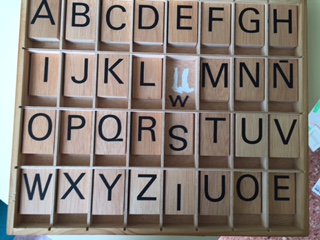 En nuestra sesión, ya no dio tiempo a más, pero yo os propongo que juguéis con las letras de madera y escribir el nombre de alguno de estos billetes, quitarle letras, mirar las que me coinciden con otros billetes, colocar dos billetes y yo le escribo uno y que acierte cual es,… Lo que se os ocurra!!!!!