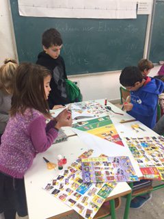 2- Los Grupos Interactivos- Se trata de dividir un grupo en tres, con 8 o 10 alumnos cada uno. Se trabaja de manera simultanea, en espacios diferentes y con actividades diferentes. Esto lo pueden hacer tres profes o pueden usar profesorado de prácticas, ayudantes de conversación (lo que nosotros llamamos lectores) o familias. Dependiendo de nivel con el que se trabaje, las actividades pueden variar entre 20´ o 30´. El tiempo total sería de 1 hora y media y la condición es que todos los grupos deben de pasar por todas las actividades. En las fotos se ver un grupo de 5º dividido en tres y las actividades que realiza cada uno de los subgrupos.