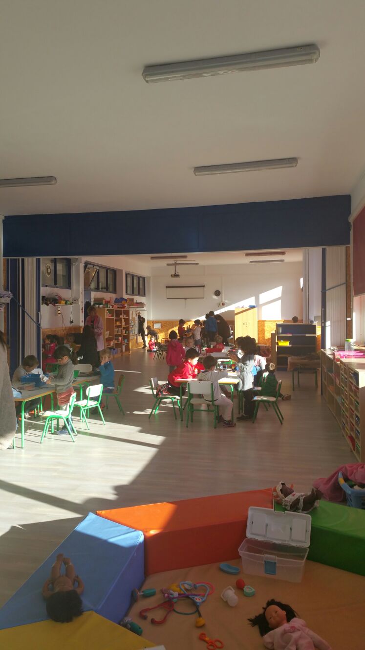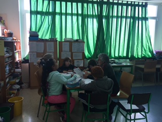 Este espacio se utiliza para la realización de los Grupos Interactivos y como tal, ejerce su función de 12:30 a 14:30 y de 16:00 a 18:00, con la intención de ofrecer ayuda a aquellos niños que no pueden hacer las tareas de casa.