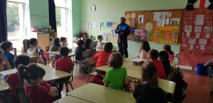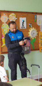 Hoy hemos tenido una visita muy especial. El papá de Candela de primero y Telmo de tercero nos ha hablado de su trabajo de policía en Gijón y hemos aprendido muchas cosas.