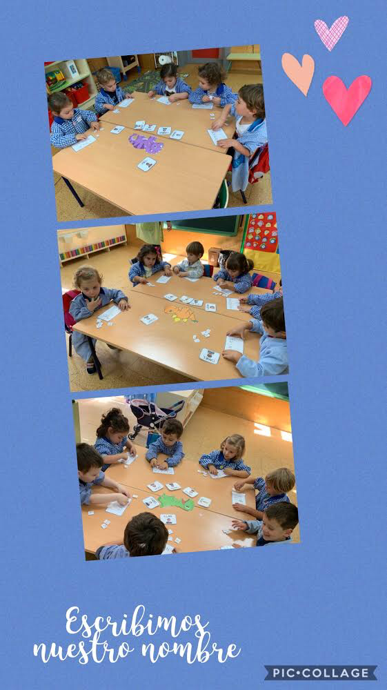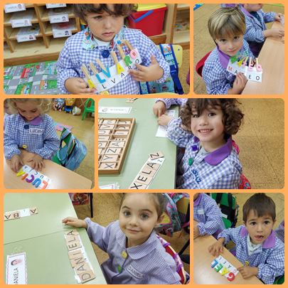 Empezamos a trabajar nuestros nombres, con letras de madera, pinzas o letras magnéticas y este es el resultado!