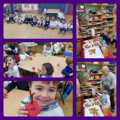 Para celebrar el Magüestu hicimos diferentes talleres: de rosquillas, un imán con forma de manzana, cuentacuentos y juegos tradicionales. Además comimos castañas y bebimos sidra dulce. Qué bien lo pasamos!!