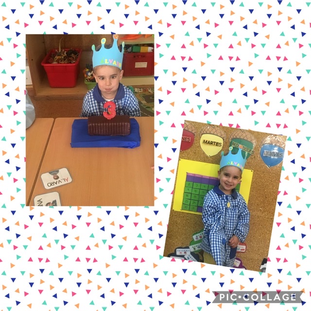 Pero de repente….un día llegamos al cole y la profe le puso en la cabeza a Álvaro ¡una corona!. Si, si, una corona azul, que no quitó en toda la mañana. Las demás maestras al verle, le daban achuchones y le felicitaban, lo mismo pasaba con el resto de infantiles, que gritaban ¡felicidades!. Era un día especial.