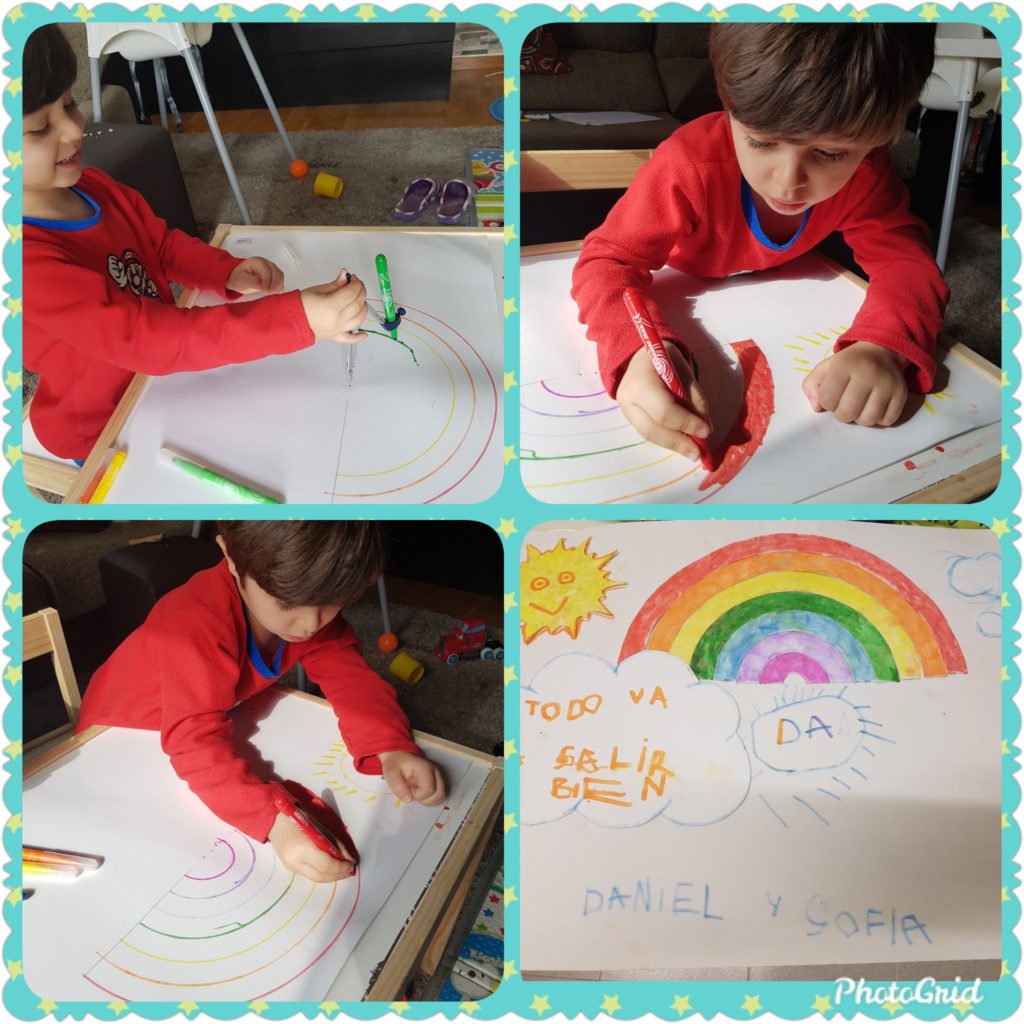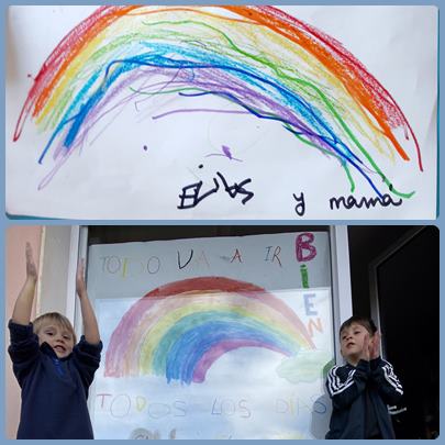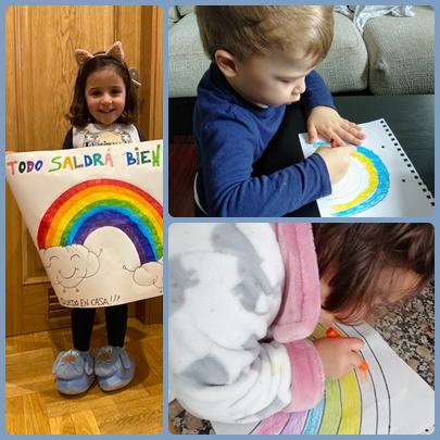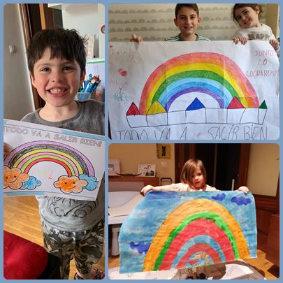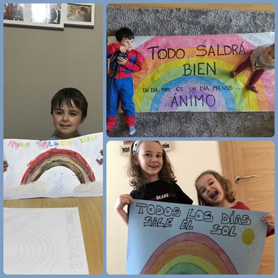 Las clases de los morados y los azules ponemos una nota de color en estos días un poco grises de cuarentena. ¡Todo va a salir bien! Lo conseguiremos porque sois unos campeones y campeonas. ¡Ánimo familias!