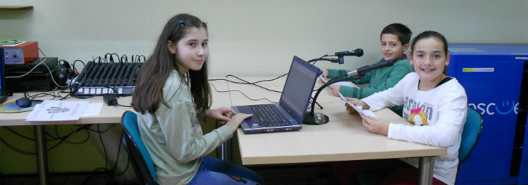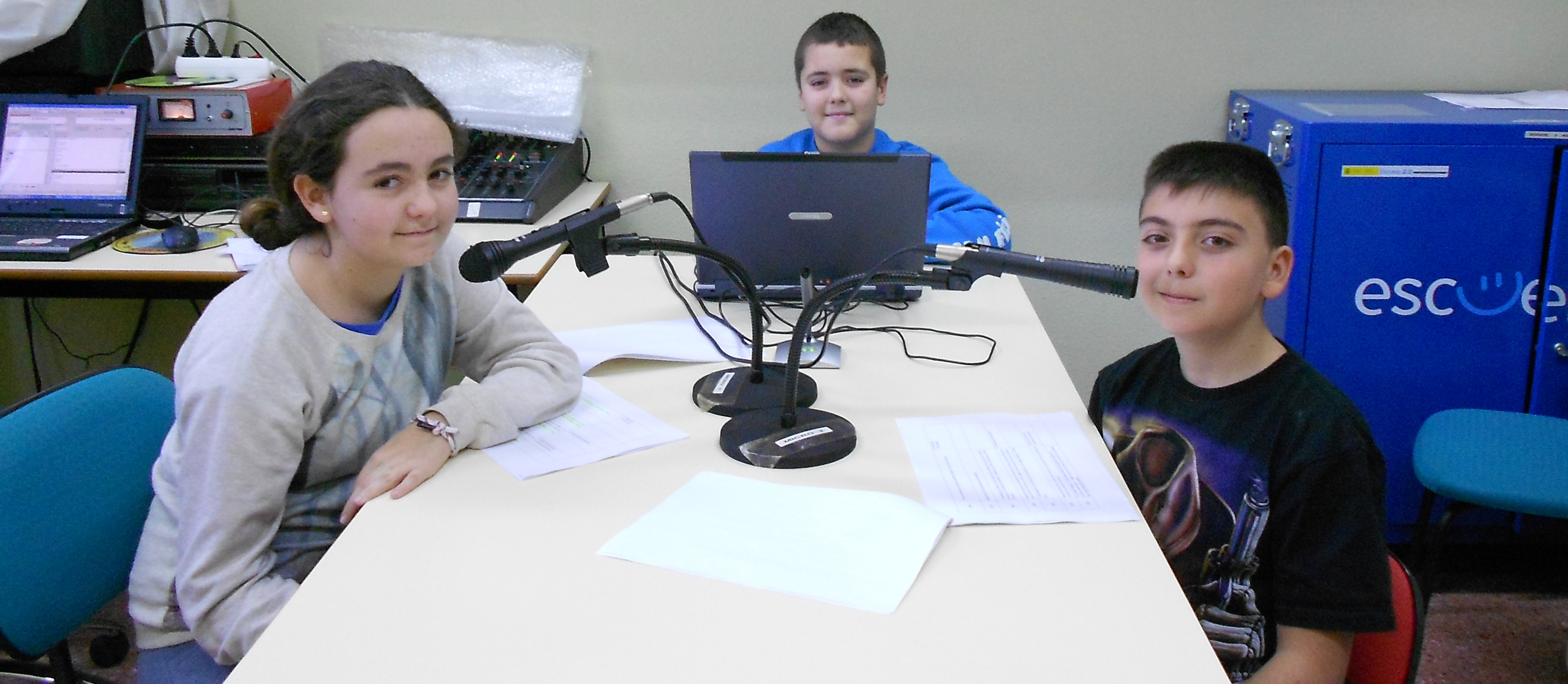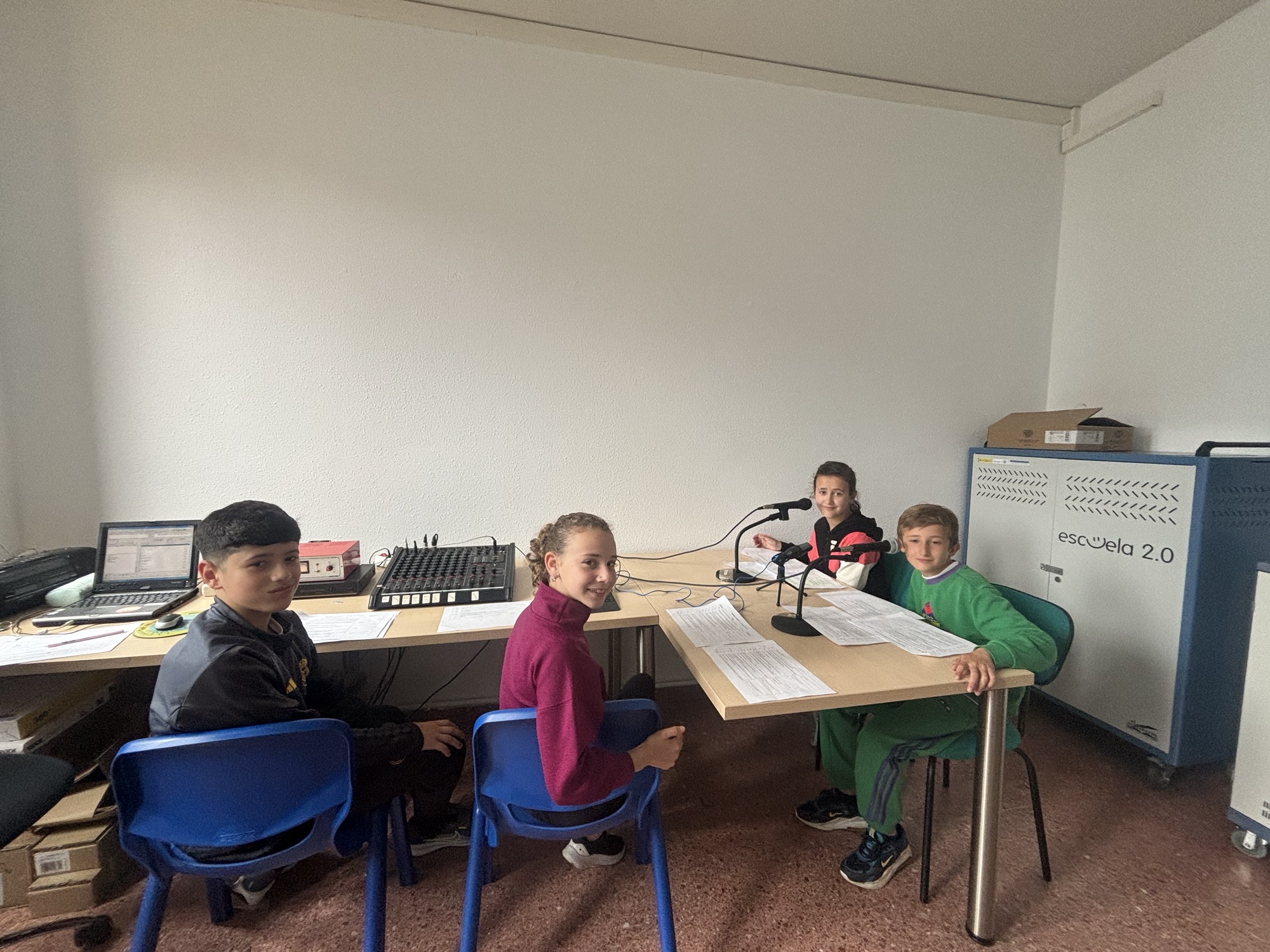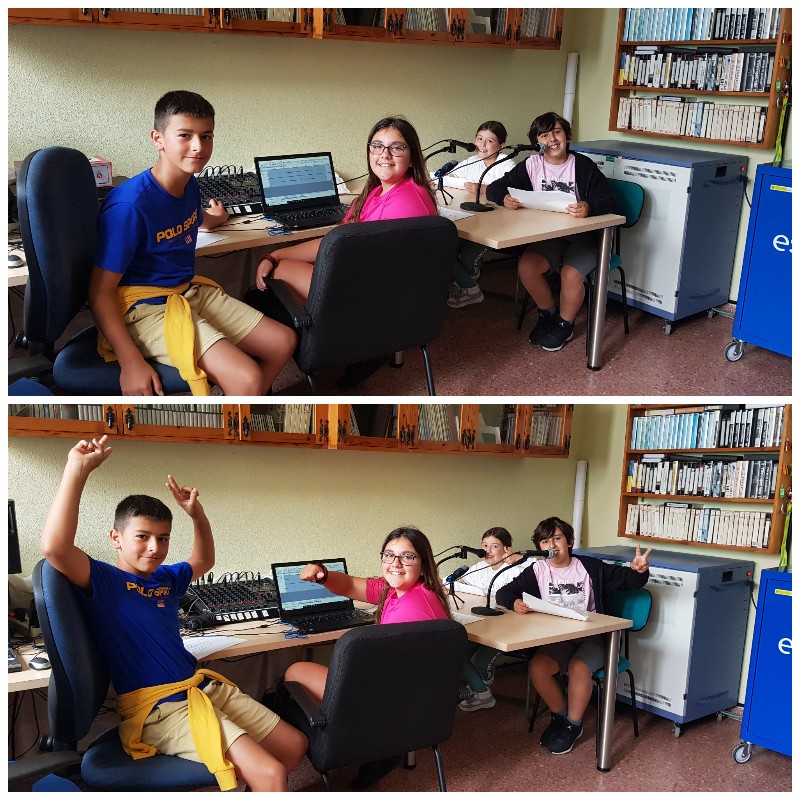 Presentan este programa, Antón de 6ºA y Eva de 6ºB. Mateo, de 6ºB colabora con las grabaciones y Mariam de 6ºA en la mesa de mezcla, controlando el sonido.