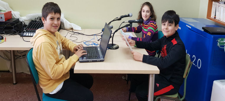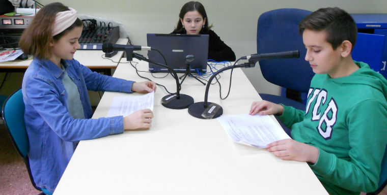 Presentan este programa, Maeve de 6º A y Emma de 6ºB, realizando las grabaciones, Jesús de 6ºB.