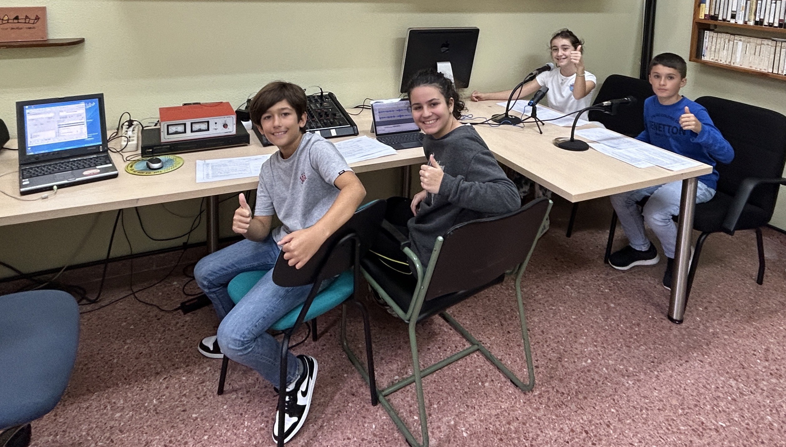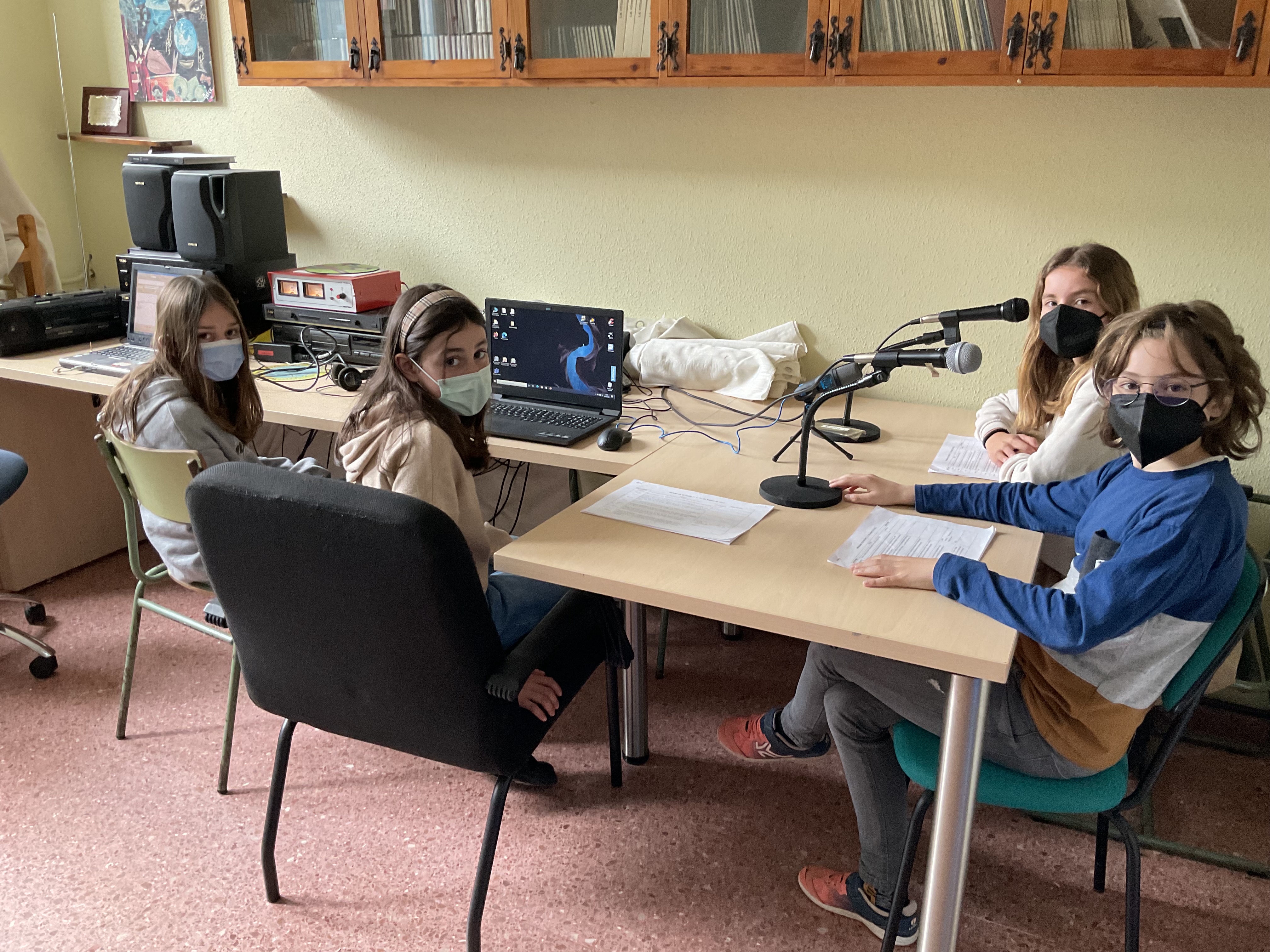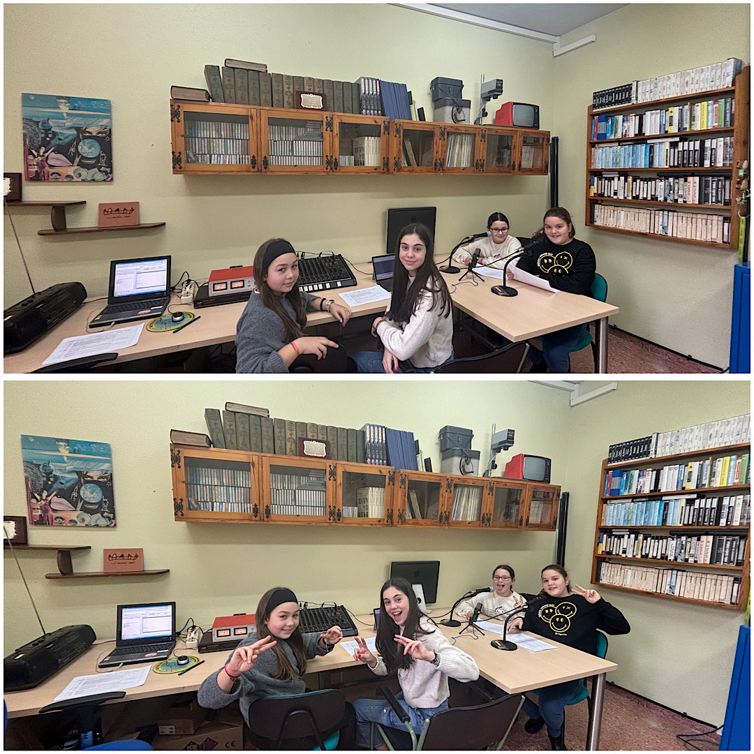 Presentan este programa, Marela de 6ºA y Candela de 6ºB. Daniela, de 6ºB colabora con las grabaciones y Mateo de 6ºA en la mesa de mezcla, controlando el sonido.