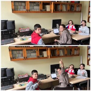Presentan este programa, Marian de 6ºA y Nerea de 6ºB. Antón, de 6ºA colabora con las grabaciones y Mateo de 6ºB en la mesa de mezcla, controlando el sonido.