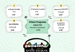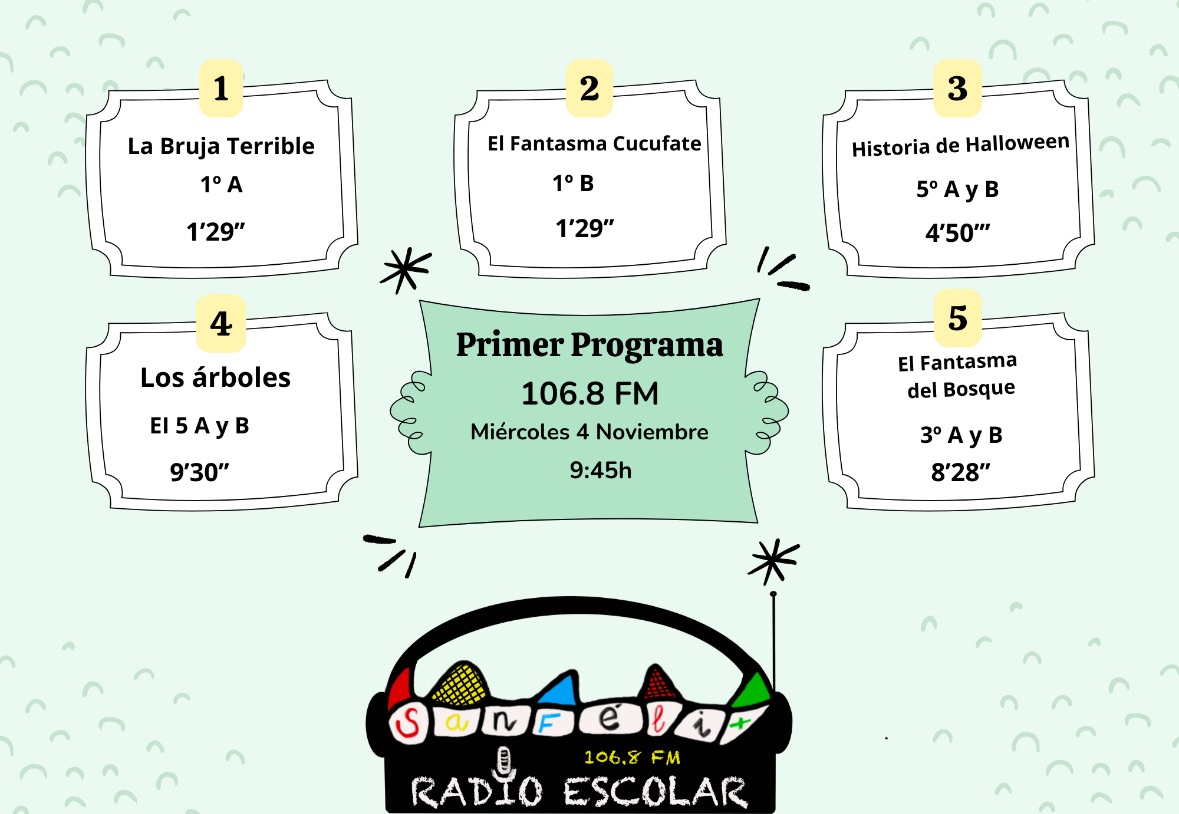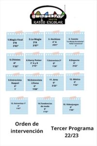 En el programa podéis escuchar canciones, entrevistas, chistes, y diferentes secciones que el alumnado del cole ha preparado con mucho esmero.
