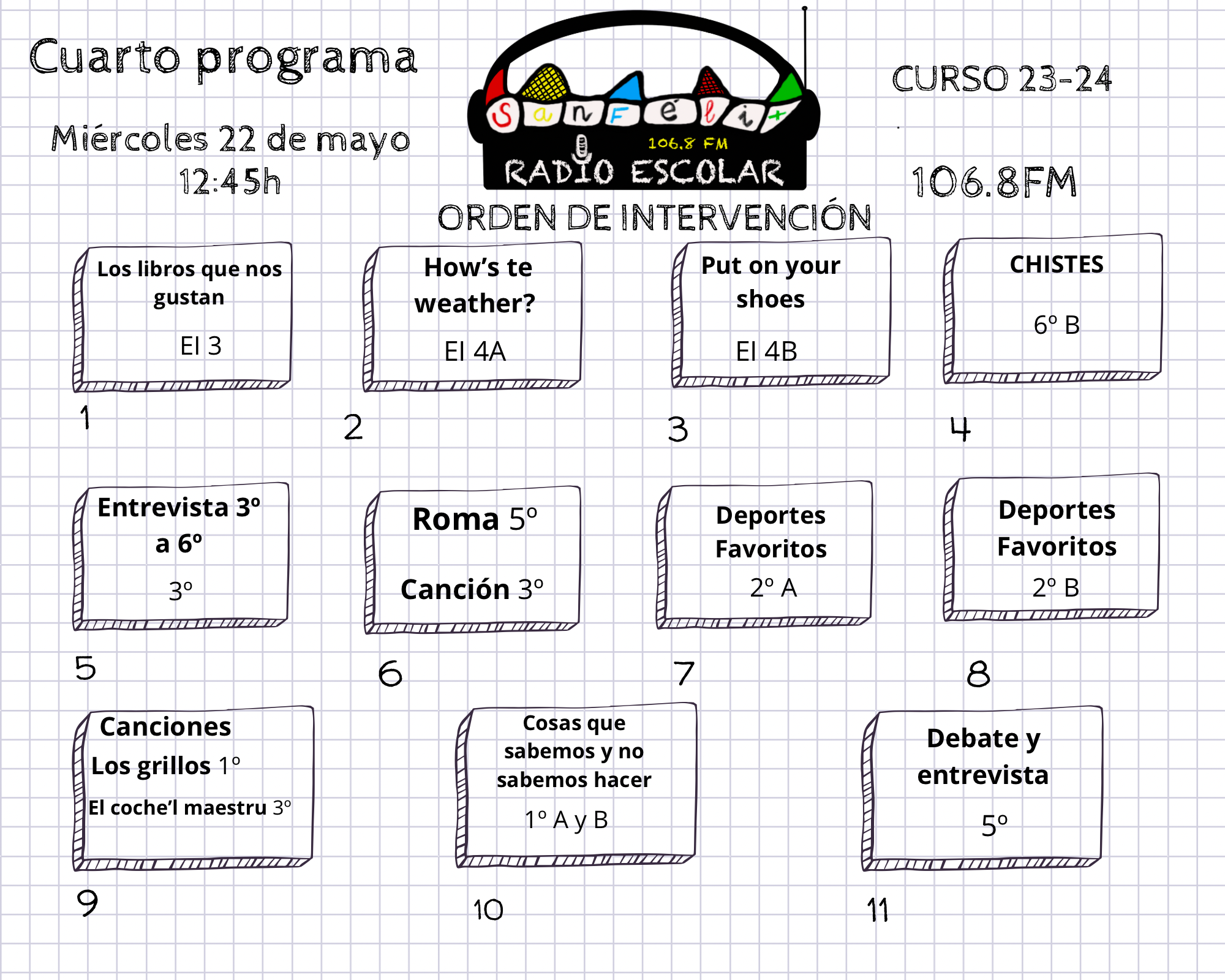 Programa en el que tenemos canciones, entrevistas, poesías…y un montón de recuerdos del curso que ya acaba.