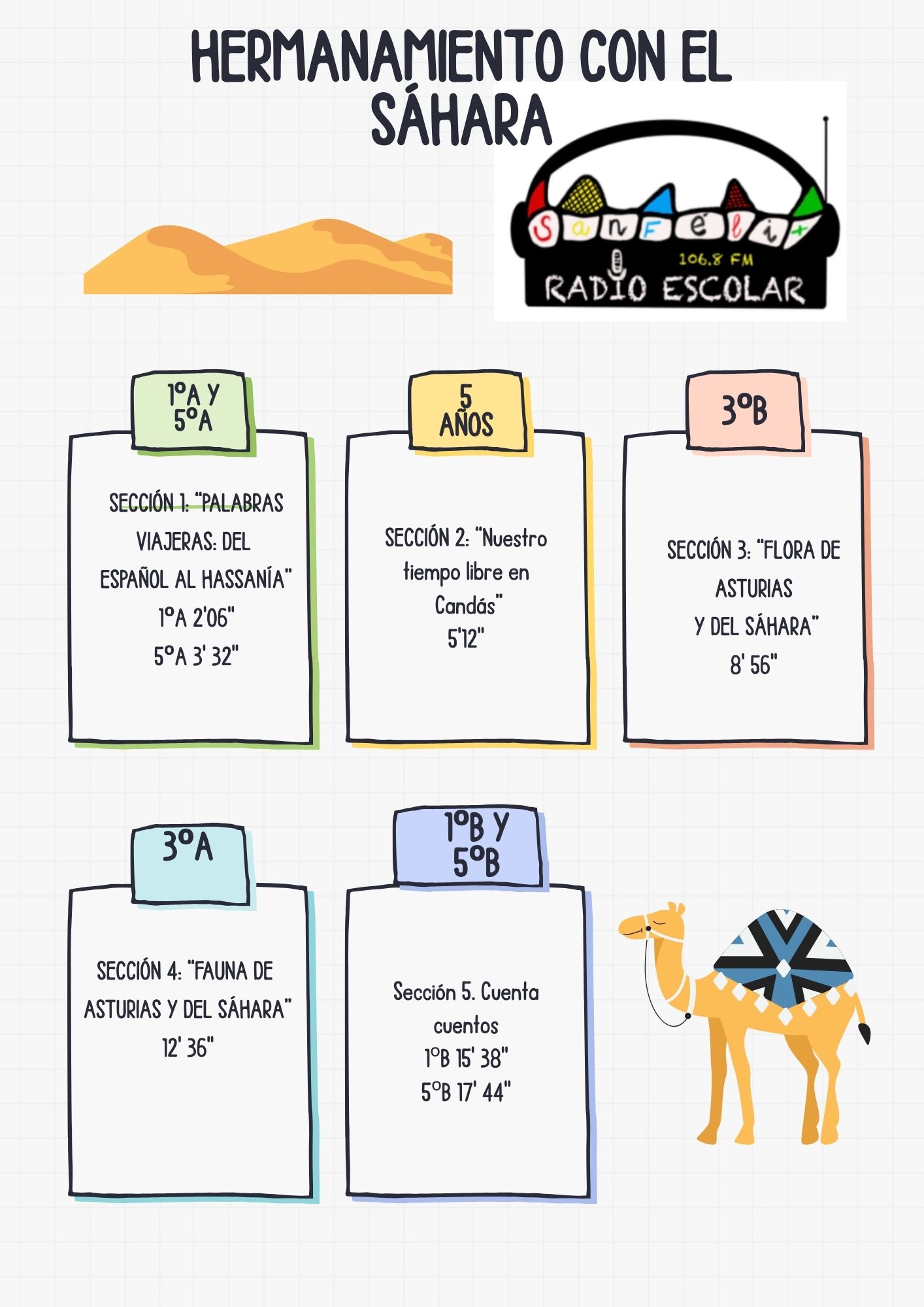 Arrancamos el curso con un programa muy viajero…¡nos hermanamos con el Sáhara! Esperamos que a los niños de ese lugar tan lejano les guste tanto como a nosotros este programa dedicado a ellos.