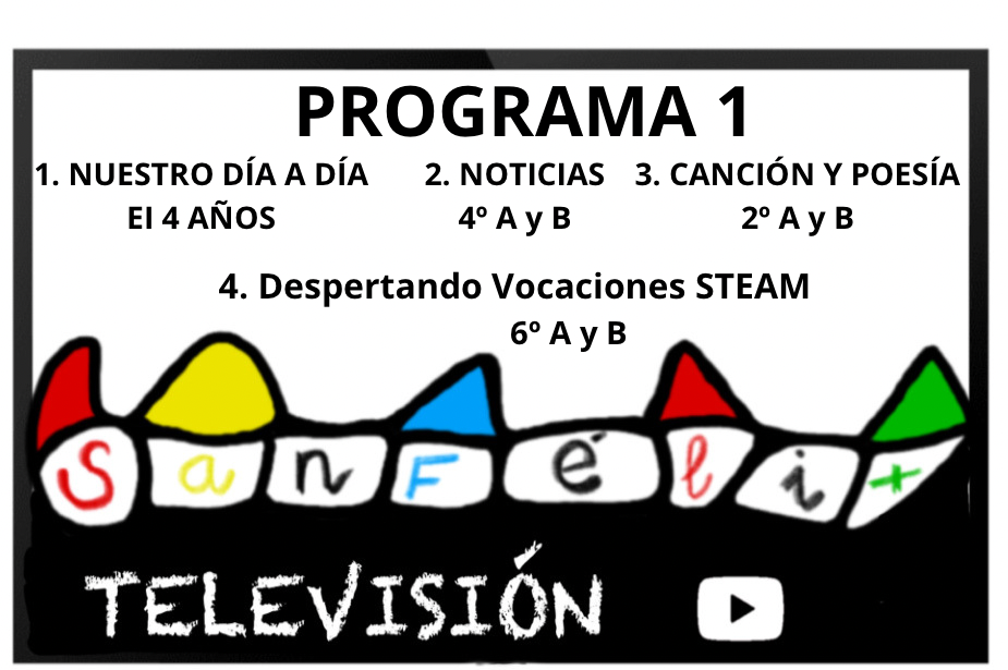Nos hace mucha ilusión presentaros nuestro primer programa de televisión donde hay un magazine muy variado y atrayente. En esta ocasión, han presentado el programa: Elena, Javier, Pablo y Candela de 5º A y Vera, Javi, Celia y Amina de 5ºB.